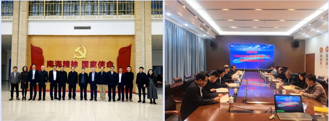 2026年2月3日下午,研究院冯秘书长和中国核能电力股份有限公司于开治总监、中核海洋核动力发展有限公司冯守佳总经理、海陆建设集团有限公司殷生董事长等一行考察调研了位于广州的南方海洋科学与工程广东省实验室,该实验室是由张偲院士牵头从事岛屿与岛礁可持续开发、海洋资源利用及生态保护的创新平台。中国工程院院士、中国海洋大学教授包振民院士参加调研并讲话。会议期间,还参观了实验室。